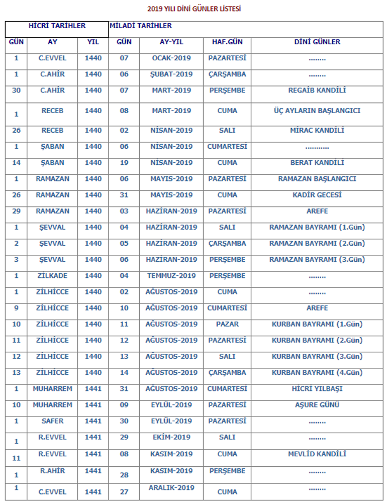 2015 yılı dini bayram tatilleri