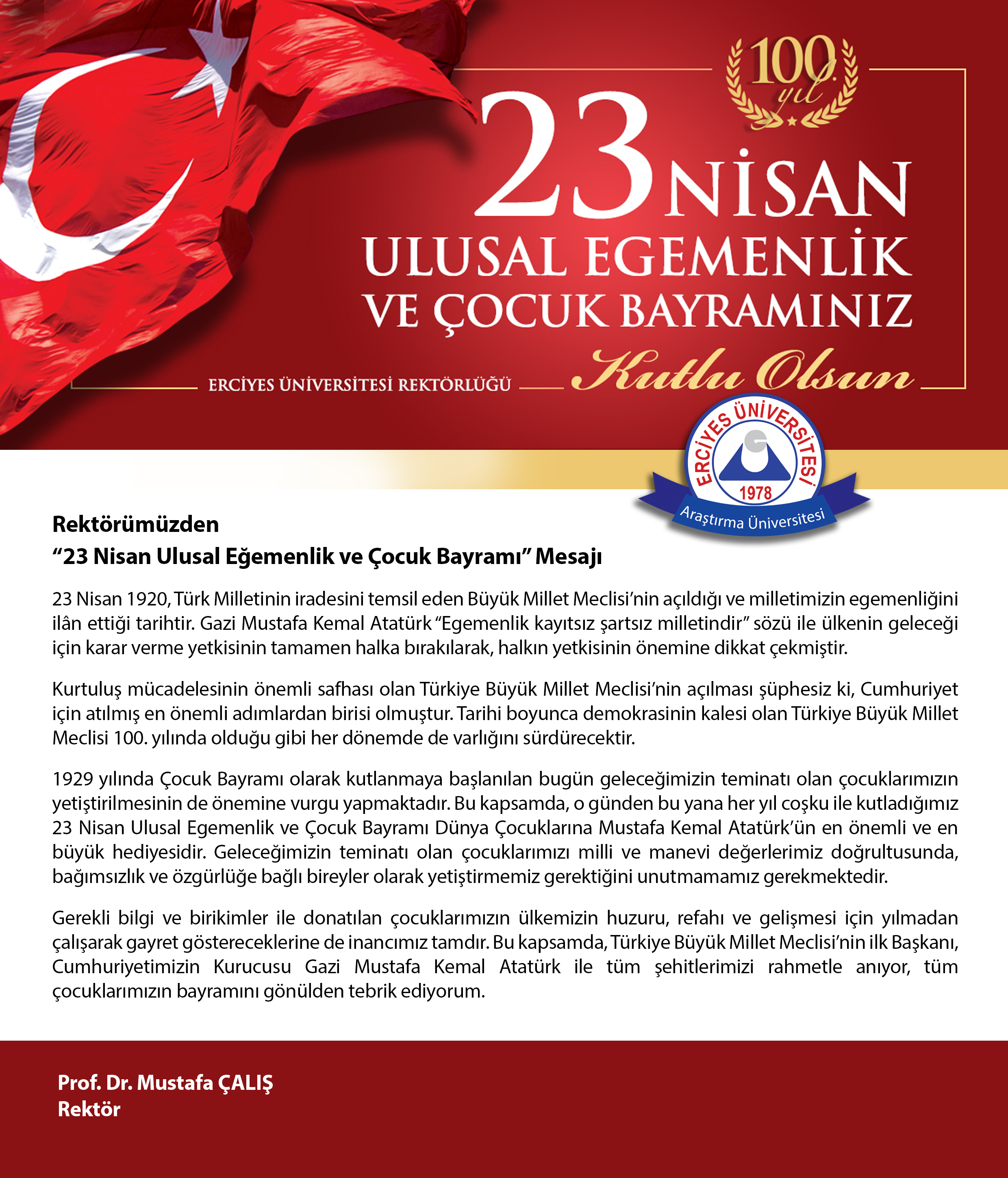 rektor baran in 23 nisan ulusal egemenlik ve cocuk bayrami mesaji izmir yuksek teknoloji enstitusu