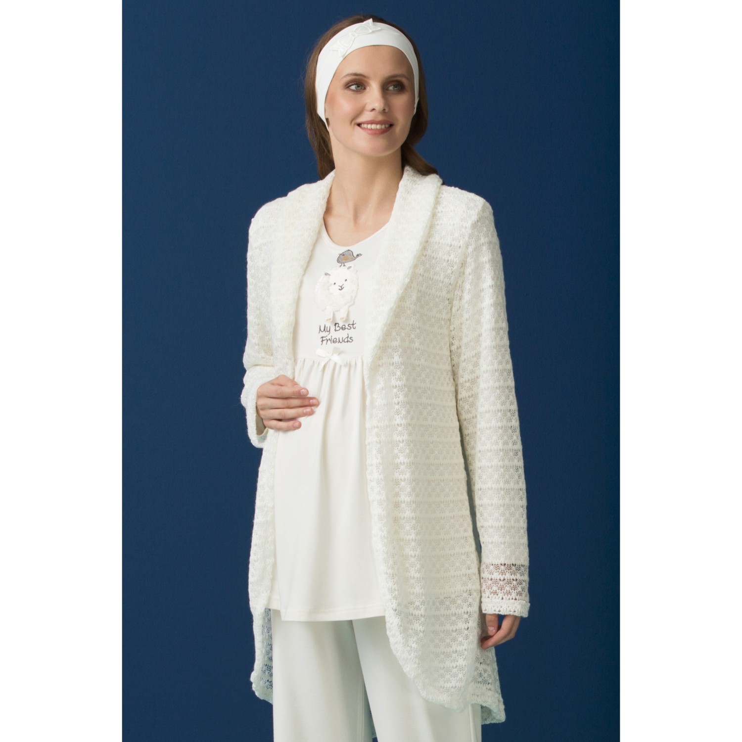 haluk bayram 3527 kollari dantel sabahlikli lohusa pijama takimi